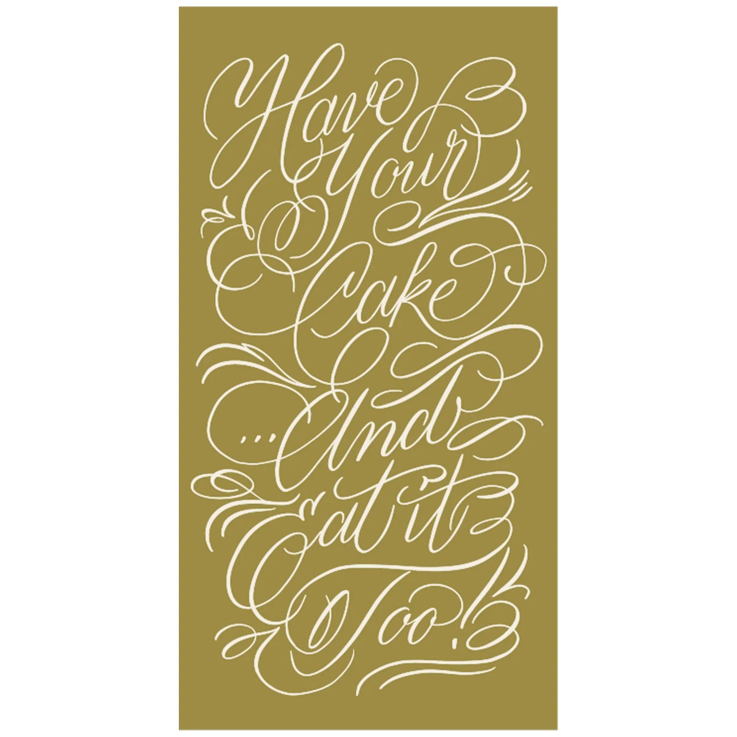 A cornerstone of birthdays, anniversaries, and more, nothing quite says “party” like a cake! Let your guests know it’s time to celebrate (with treats!) with these classic napkins, featuring elegant gold calligraphy for every occasion.