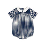 Timeless and tailored for your littlest gentleman, the Covington Bubble in Blue Ridge Check is a Southern classic through and through. Made from lightweight woven cotton, this short sleeve bubble features a traditional peter pan collar and crisp navy piping for a polished, picture-perfect look.