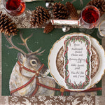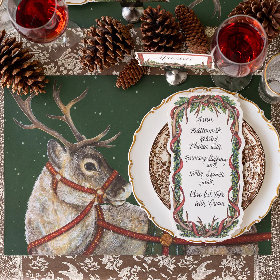 Have you ever seen such a dashing reindeer? This fellow invites you to celebrate the Christmas cheer on a gorgeous green placemat.