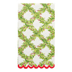 These guest towel napkins from our Holly Berry collection feature a festive trellis of lush Christmas greenery and bright holly berries. Finished with an adorable scalloped red edge, they add the perfect touch of charm to your holiday celebrations. Whether used as a stylish dinner napkin or as an elegant guest towel for your bathroom or powder room, they'll bring a touch of beauty to any occasion!