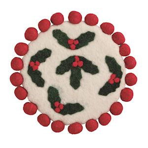 Holly Christmas Felted Trivet