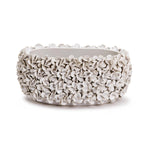 Hydrangea Blossoms have never looked so chic when interpreted in simple white. Created by hand in a skilled ceramic studio this container is sculpted petal by petal in porcelain creating a true work of art. Each piece will be unique and makes the perfect heirloom and container for plants or flowers and much more.