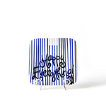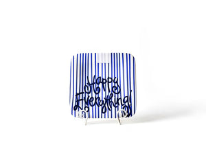 The Indigo Skinny Stripe Mini Happy Everything! Square Platter brings the happy to any party. With vertical indigo stripes and navy blue script hand-drawn onto the platter, this design is the perfect Base for all your favorite Mini Attachments. Use it to serve guests at any party, or hang it up for cute everyday décor. Find some happy every time you use this striped platter.