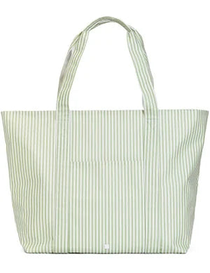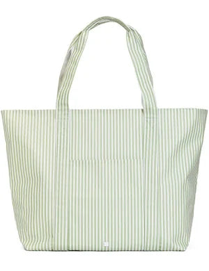 Get around effortlessly with our new Jumbo Tote. This do-it-all lightweight tote is useful year-round for all occasions - as a beach bag or for your everyday needs. Underneath the strap is satin webbing designed to prevent from slipping, an interior full slip pocket and zip pocket, a front exterior pocket, and an exterior trolley passthrough.