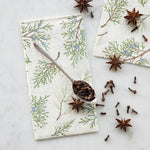 Sprinkled with sprigs plucked straight from an evergreen forest, these napkins look simple but stylish at any winter gathering.