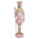 This large pink nutcracker exudes a charming and whimsical aura. Crafted in a lovely pastel pink with accents of gold and white, it perfectly embodies the spirit of festive grace and cheer. It stands at an impressive 12 inches tall, making it a perfect centerpiece for your holiday decor. The nutcracker's intricate design, from its golden crown to its elegant scepter, evokes a sense of traditional holiday nostalgia mixed with a contemporary pop of color. Bring warmth and joy into your home with this delightful decorative piece.