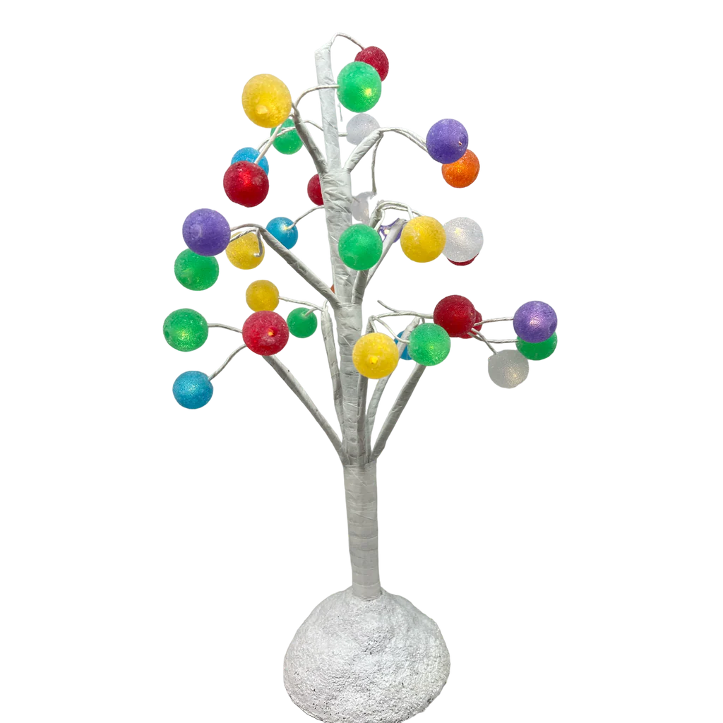 If all the raindrops were lemon drops and gum drops, if all the snowflakes were candy bars and milkshakes. The Lighted Holiday Gum Drop Tree is a colorful creation made to put you in a Candy Crush mood. The cubed lights have a sweet tooth effect on the viewer, hanging delicately from snow covered branches of sparkling white. The Lighted Holiday Cube Gum Drop Tree may look like real gumdrops, but rest assured they are not and should not be ingested. This tree will inspire you to visit the Land of Sweets in your dreams, don’t forget to say hello to the Prince and Clara while you’re there!