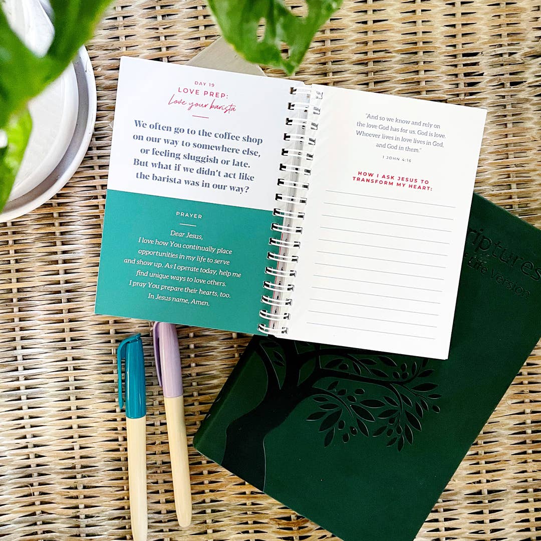 30 days of loving out loud through love prep + love practiced. This booklet is meant to guide you through 30 days (or however you’d like to work it—it’s flexible!) of “loving out loud.” Each subject includes two days: Love Prep and Love Practiced. —“Love Prep” digs into what loving that subject really means, allowing our hearts to meditate + make it personal. It includes your focus for the day, a prayer, scripture, and space to write. —“Love Practiced” provides a practical way to show up and space to share how God works. It includes your prompt for the day, a quote, and space to jot down a reflection after completing your act of love for the day :) Low pressure, high quality—that’s how it should work. Loving others, right where we are, with exactly what we have. Size: 4" x 5.75"—perfect size to throw in your bag and go!