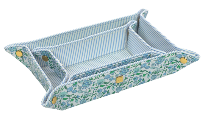 Stay organized with TRVL's Tray Setdesigned to catch all your pocket-sized items for home, office or TRVL. The four corners can be unsnapped to easily fit in luggage and placed on a hotel nightstand, to ensure no valuables are left behind. Makes for a great gift!
