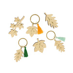 - The wooden leaf brooches have gold tone pins, and the wooden leaf keyrings have gold tone jump rings. Both the brooches and keyrings have shiny gold foil accents for a stylish effect