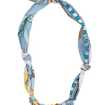 Light as air, bright as sunshine. The Desiree Butterfly Scarf Necklace is a breezy, joyful piece wrapped in soft blue, crisp white, and buttery yellow hues.