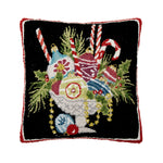 ★100% wool hooked square pillow ★100% poly velvet backing ★Includes polyester insert, zipper closure ★18x18" throw pillow ★Design by MARY LAKE THOMPSON ★Christmas winter holiday home decor ★A festive way to spruce up your home for the holidays or would make a wonderful Christmas gift