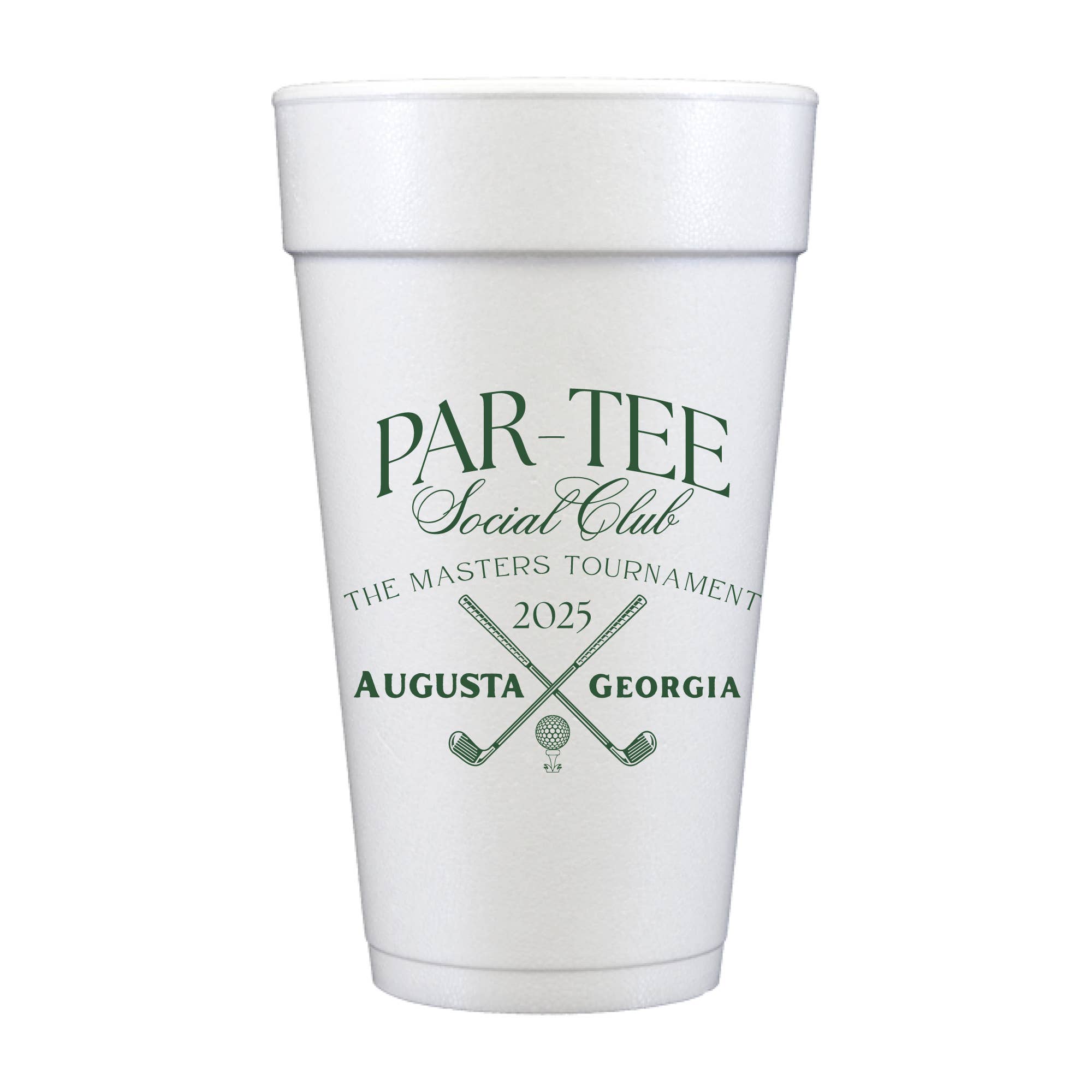 Roadie 20oz Foam Cup Pack of 10 Perfect for any golf trip, having at home to Sip in Style or take along for a tailgate or roadie! 16 FLUID OUNCES Single Sided Print Forest Ink Color 10qty Per Set, Wrapped with a bow at the top in a clear bag -napkins,