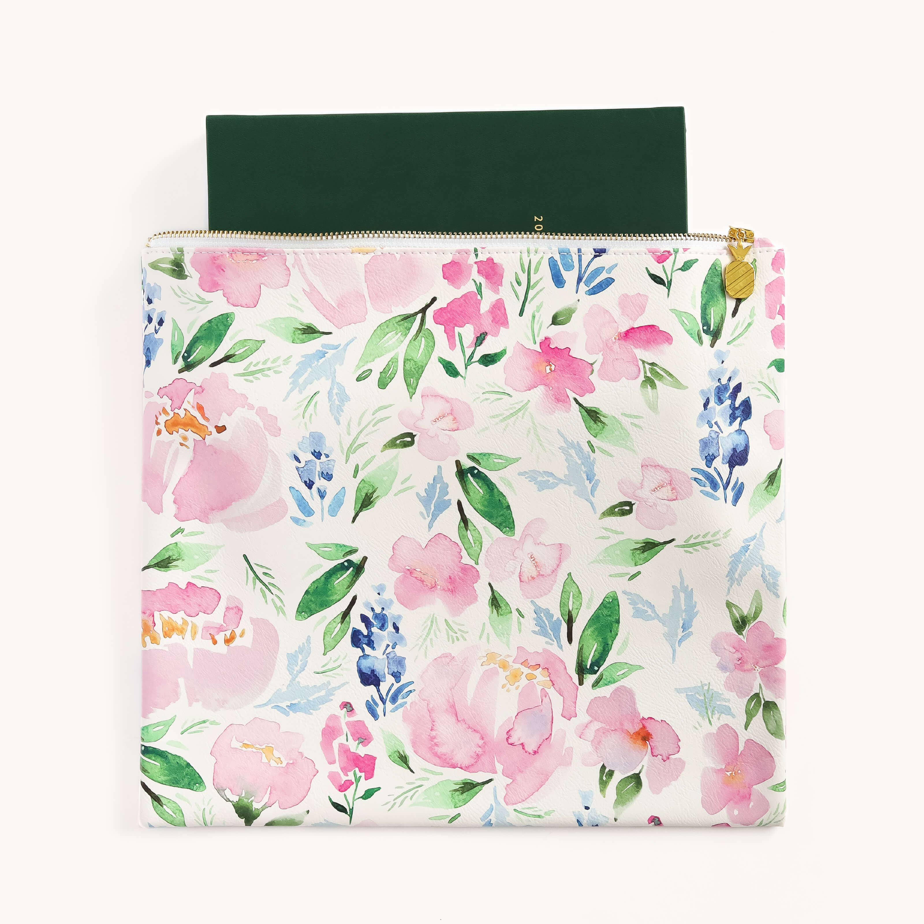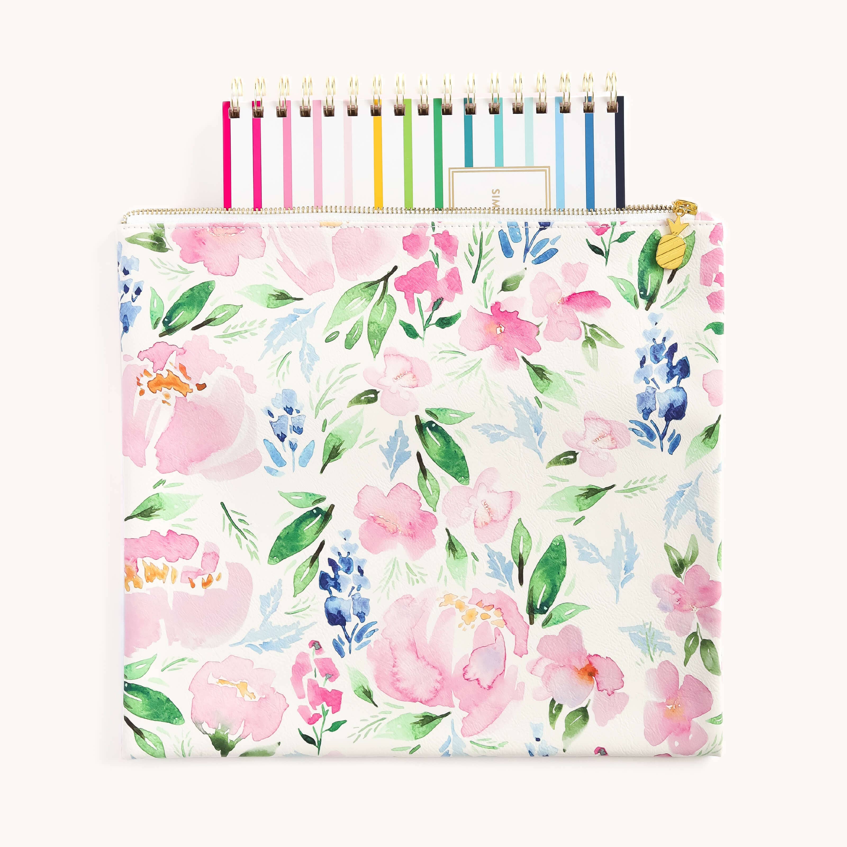Made to hold what matters most! This planner pouch features a durable leatherette exterior, a soft padded layer, and a lined fabric interior. Designed for versatility, it includes gold zipper teeth and a stylish zipper pull to keep your planner, accessories, travel essentials, snacks, or other items organized. Sized to fit a variety of planners and more. Not intended for use to protect electronic devices.