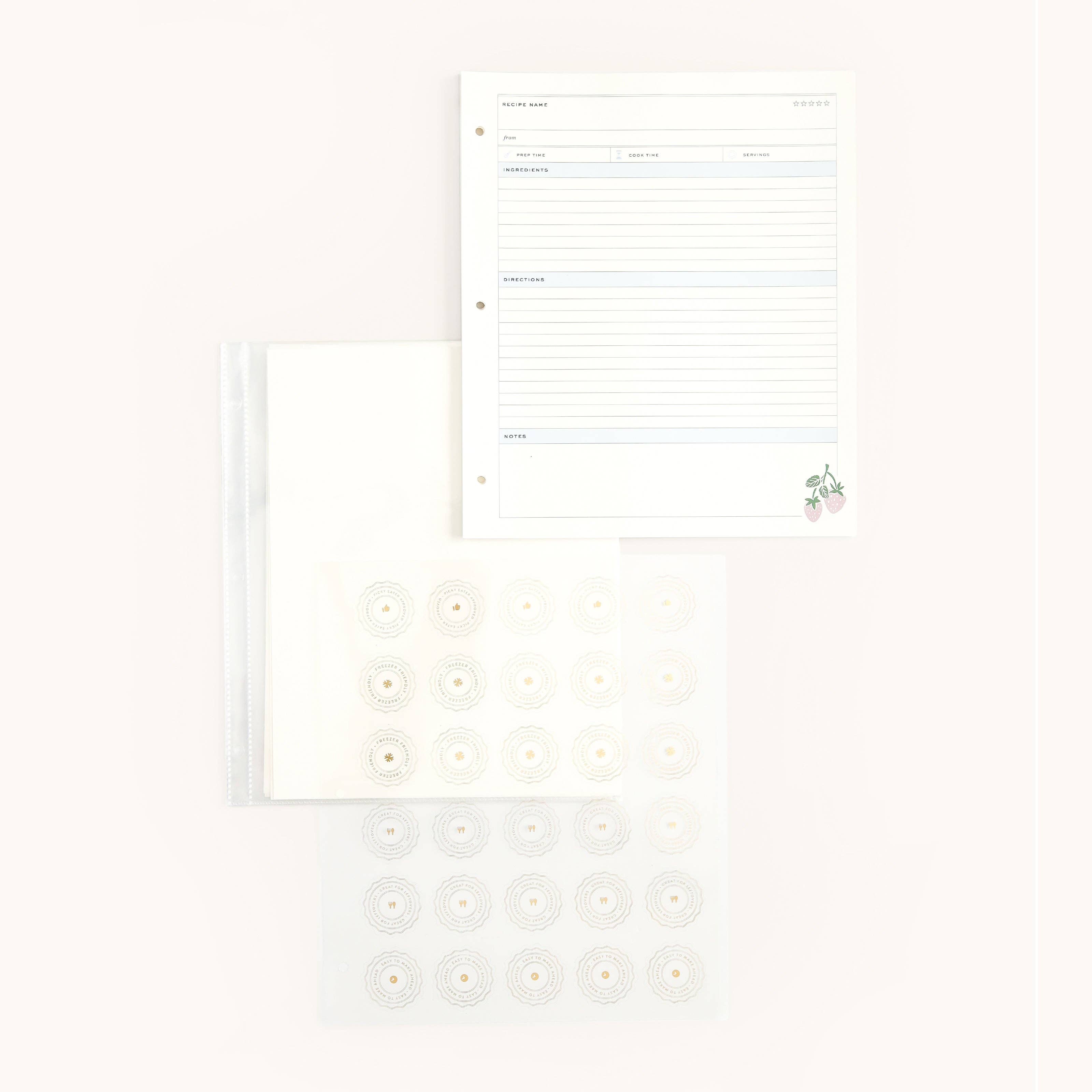 Keep your Heirloom Recipe Binder beautifully updated with our Recipe Binder Page Pack, featuring extra recipe pages and clear sheet protectors to preserve your favorite meals. Whether you're adding new family traditions or organizing passed-down favorites, this set ensures your collection stays neat and timeless for years to come. 25 sheets measuring 9.75 x 11.3 inches 25 clear page protectors 1 sheet of 25 clear stickers with gold foil detail 80lb. white paper Packaged in a cello bag with a protective insert & gold foil label Imported