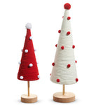 Bring festive spirit to your home with the Red and White Pom-Pom Tree. Crafted from paper, MDF, and polyester, it comes in two sizes: 5" diameter by 15" height and 4" diameter by 12" height. Its vibrant red and white pom-poms add a playful holiday touch to any room.