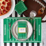 Score! Hester & Cook's Touchdown Placemat is always a winner. The green football field design is perfect for an easy game-day table or buffet setting, as well as a sports themed party of any kind! Our paper placemats add an elegant touch to any tablescape.
