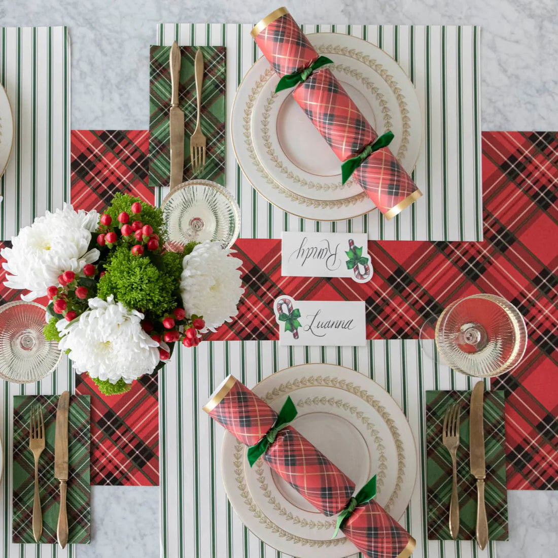 These festive holiday crackers in a classic red plaid are bursting with surprises! Originating in England, this fun tradition is a great complement to your holiday party or dinner. Crackers are beautiful on the table and are fun party favors for your guests. Simply grab each end and pull apart with a pop to reveal the prizes within.