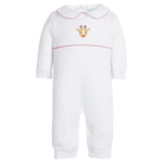 Get ready for those reindeer games in our cutest holiday crochet yet! Made from the softest white pima cotton and trimmed in red picot, our Reindeer Crochet Playsuit will be your favorite holiday heirloom piece. The red-nosed reindeer crochet detail is hand-stitched by expert hands so your garment will last through lay and play!