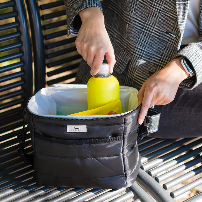 PUFFED UP FOR LUNCH. Designed with solid colors and soft, puffer fabric, this insulated cooler is more than just a lunch box – it's your trusty sidekick. Whether you're headed to a picnic, brewery tour, or BBQ, it keeps your drinks and snacks cool in a fun and fresh way. The soft sides give it a cushiony feel, while the crossbody strap ensures you can take it anywhere hands-free and worry-free. Lightweight, portable, and oh-so-stylish for dining al fresco.