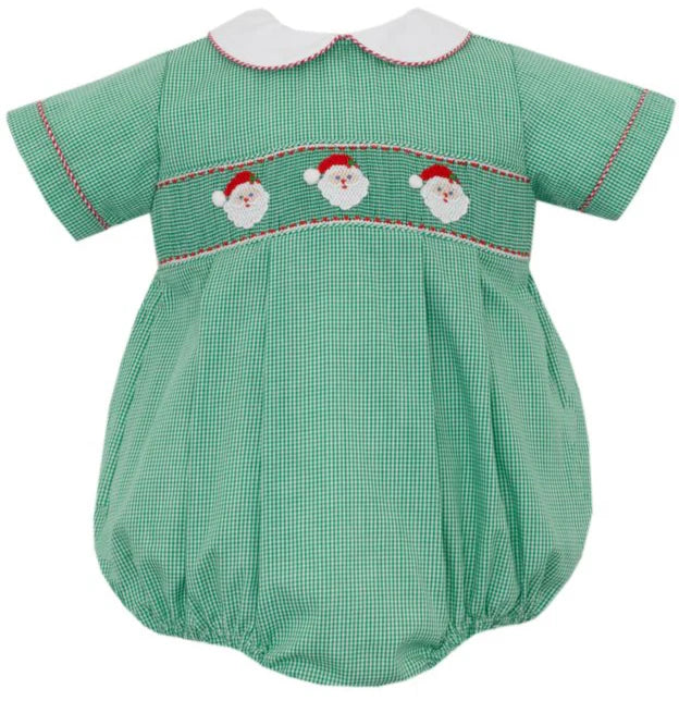 Get your little one ready for holiday fun in this Santa Face Green Gingham Bubble! Featuring a charming green gingham pattern with a festive Santa face, this short-sleeve bubble is perfect for spreading playful cheer. Soft and comfy, it makes dressing up easy and joyful for your boy’s seasonal adventures.