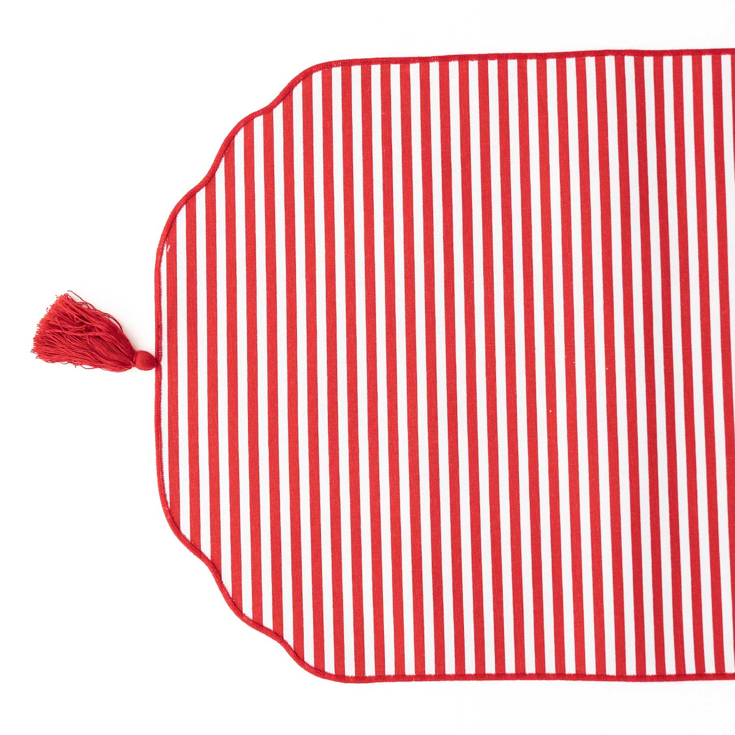 Looking to add an elegant touch of excitement to your holiday dining table? Look no further than the Santa Toile Table Runner! This eye-catching table runner is perfect for both everyday meals and holiday occasions. Festive novelty prints & chic tassels adorn this reversible table runner, adding a splash of color to brighten up any space. It pairs perfectly with our rattan glassware and printed table linens, providing you with the full look that evokes a refined yet easygoing atmosphere in your home. The best part? It's reversible, featuring two exquisite holiday prints, you'll never grow tired of using this table runner during the Christmas season. Bring home the Santa Toile Table Runner today to add a beautiful finishing touch to your décor. 16" x 108" 100% Cotton Machine Wash Cold, Gentle Cycle Tumble Dry Low. Do Not Iron. Do Not Dry Clean Designed in the USA; Imported