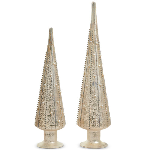 Add a festive touch to your holiday décor with the Silver Mercury Glass Pearl Tree. Crafted from glass, this elegant piece features a shimmering silver mercury finish and delicate pearl details. Available in two sizes—18 inches tall by 4.25 inches in diameter, and 15 inches tall by 4 inches in diameter—it fits perfectly on mantels, tabletops, or shelves, bringing a warm and sophisticated glow to your seasonal celebrations.