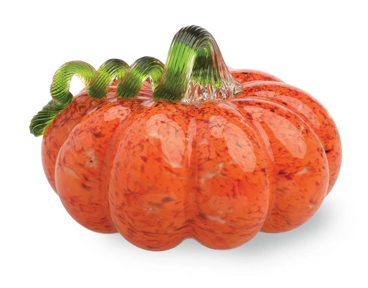 Bring a burst of playful color to your fall decor with the Small Glass Pumpkin in vibrant orange topped with a green stem. This charming glass pumpkin adds a fun, glossy touch to any space, perfect for brightening up tabletops or shelves with a festive autumn vibe!