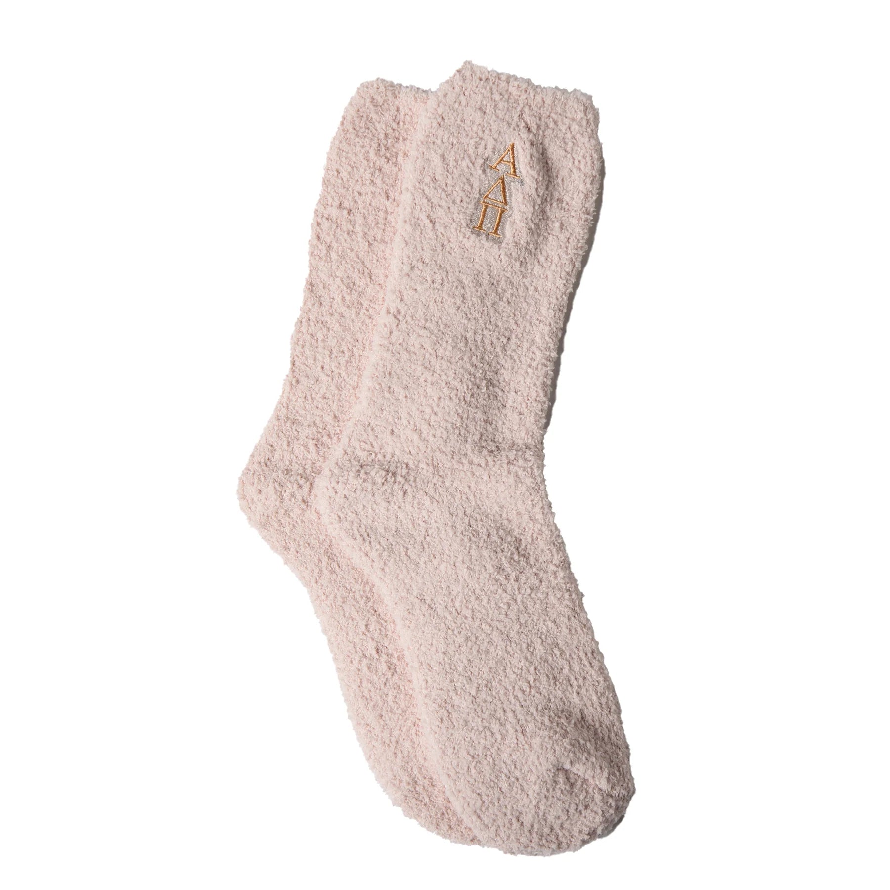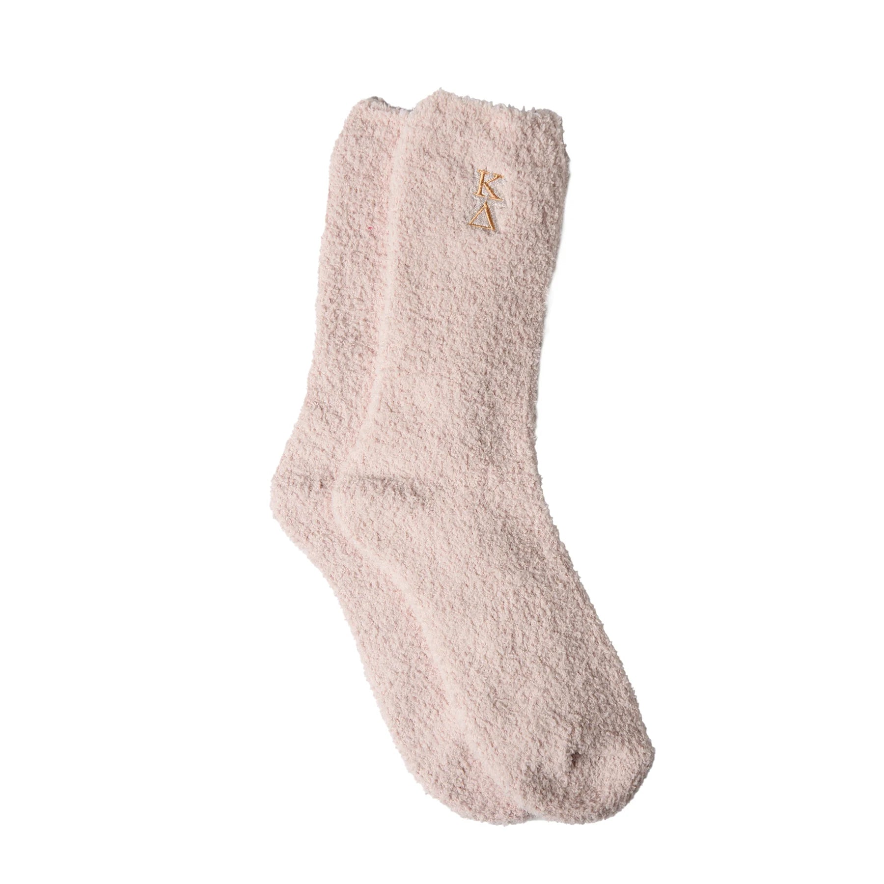 Indulge in ultimate coziness with these super soft plush socks! Relax in luxurious style in these socks personalized with your Greek letters and adorned with your beloved sorority emblem.