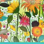 • Sunflowers, daisies, and other florals grace a summer meadow on these lovely cards.