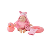 Just right for a trip to the beach or bathtime play. Our Splash and Play™ Cuties are fully submersible and float! Hang up to drip dry after play. Each style comes with a wash mitt, hooded towel, floaty ring and duck toy