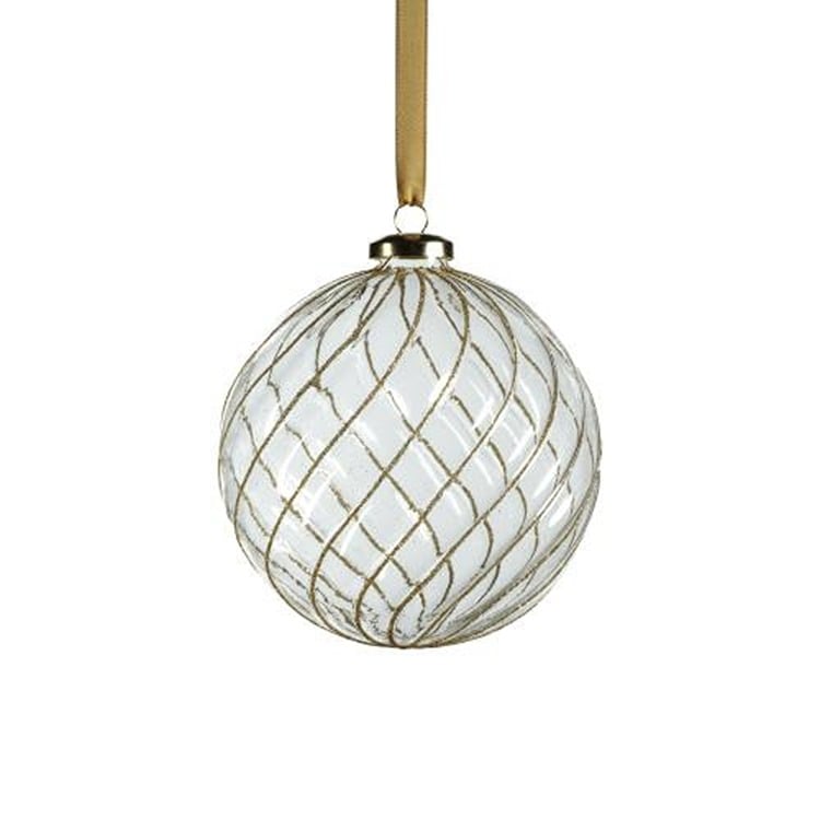 Swirl Glitter Ball Ornament-Clear w/ Gold