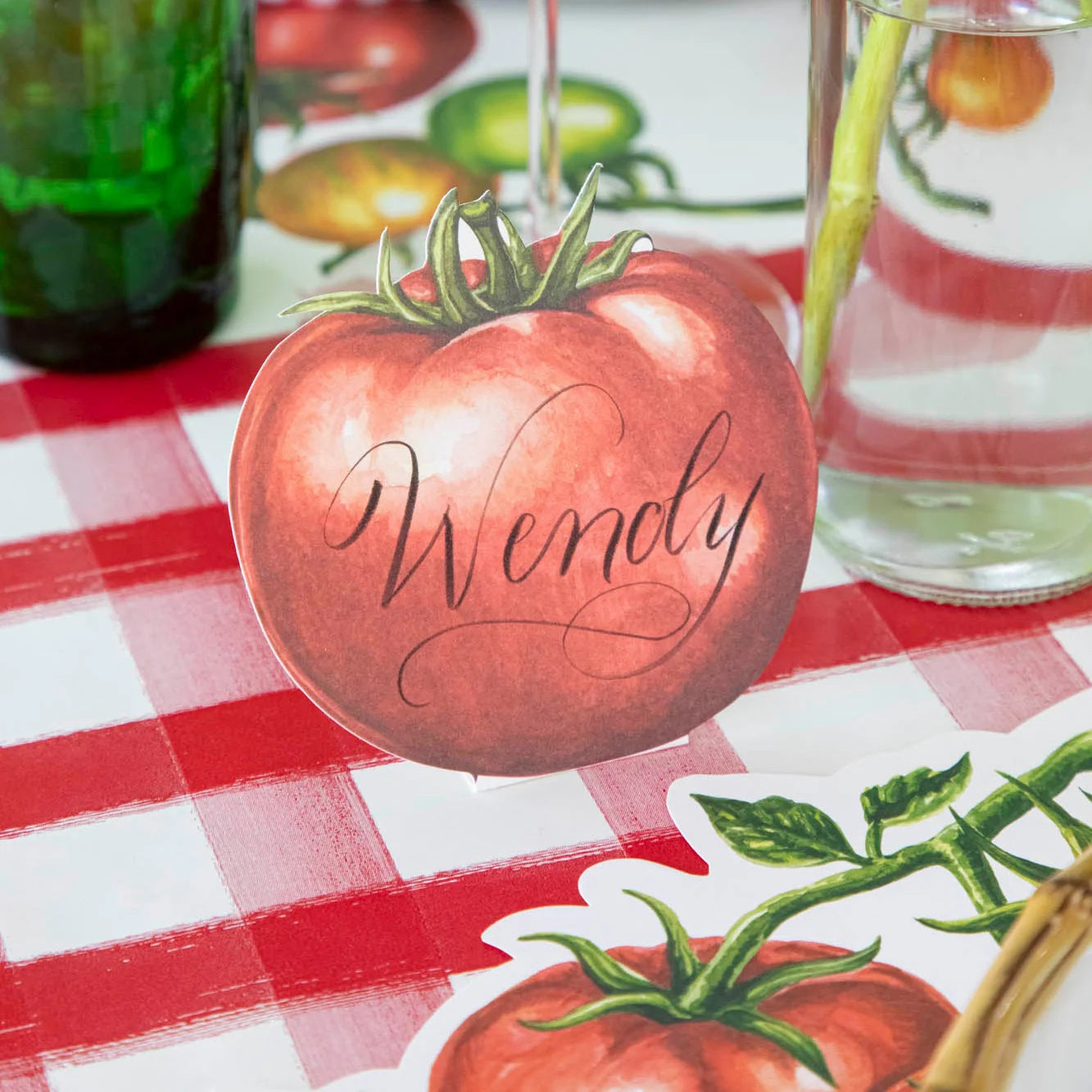 Sitting life-sized on your tables and buffets, the Tomato Place Card is a bright addition to summer settings! Your guests might just try to take a bite of this delightful finishing touch. Place cards can make guests feel extra special at your gatherings. They also make wonderful buffet labels!