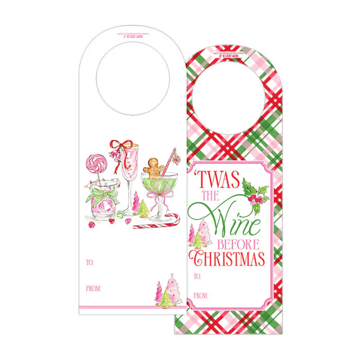 Twas The Wine Before Christmas Red Plaid Wine Tag