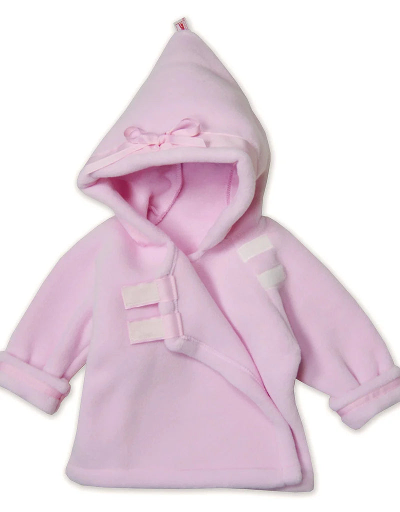 Widgeon's classic Polartec fleece coat is possibly the best infant/toddler outerwear ever made. Flap-over-flap design has Velcro close for easy on/off and double layer protection for the child's chest area. The ingenious design allows for frustration free dressing and undressing. Grosgrain ribbon at the top of the hood provides adjustability to ensure a snug fit around the head on windy days. Made from Polartec Classic 300 with DWR from Malden Mills to insure the best weight-to-warmth ratio possible. The rolled up sleeves and generous sizing allows for some growth before you need a bigger size. 100% Polyester. Machine Washable. Imported.