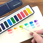 This 12-color Artist Grade Watercolor Set is made for anyone who wants rich, vibrant color in a simple, portable format. Tucked into a sturdy metal tin with a removable mixing palette, it comes ready to use with a #2 watercolor brush so you can start painting right out of the box. It’s the perfect companion to our watercolor kits, giving you even more variety and flexibility in your creative practice. Materials Included: 12 artist-grade watercolors Sturdy metal travel tin with secure lid #2 round watercolor brush Removable mixing palette inside tin