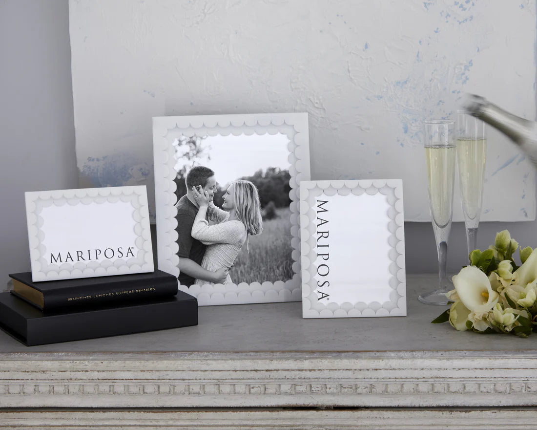 Providing an element of luxe, this chic yet whimsy picture frame is the way to showcase some of your most thoughtful memories. Our White Acrylic Double Scallop Frame has fashion-forward acrylic layered together to create a standout piece for any room. Gift boxed with our classic packaging, this will make an ideal gift.