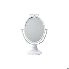 This elegant metal mirror is not only a functional piece but also a stylish addition to any room in your home. Standing at 13-3/4" tall, it features a beautiful bow design that adds a touch of sophistication to your space. The adjustable stand allows you to easily position the mirror for the perfect view, making it ideal for applying makeup or styling your hair. Its sleek design and versatile size make it a great addition to your vanity, dresser, or bathroom countertop. Add a touch of glamour to