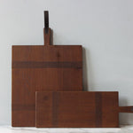 These reclaimed wooden boards are inspired by classically rooted concepts and have been updated for the modern home. The boards are finished with a rich saddle wax and are distinguished by a stitched, aged-leather strap to evoke an equestrian free-spirit. Versatile in the home, these boards can serve a charcuterie spread or be hung on the wall as elevated décor. The back of the board showcases the natural wood grain and intentional knife marks are created by a master craftsman to replicate the look of authentic originals.