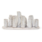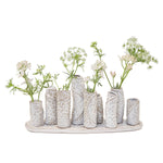 Effortless flower arranging with our Pearly White Embossed Patterned Multi Vase. This porcelain beauty features 9 sections on a platform, creating a stunning display for your favorite blooms. Handcrafted with intricate details, it exudes timeless elegance and charm. Perfect for adding a touch of sophistication to any room, this vase is a true statement piece that will effortlessly elevate your decor.